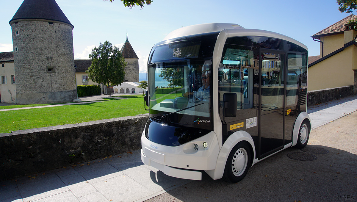 Afin de tester un prototype très abouti du véhicule du système CRISTAL, véhicule 100% électrique, compact et modulable, une démonstration in situ sur un week-end a été organisée à Rolle par le bureau GEA, laquelle a réuni la Ville de Rolle, CarPostal et le Conseil régional du district de Nyon (VD). Il a pu démontrer sa capacité à embarquer jusqu’à 14 personnes en mode  » navette  » et à s’insérer dans un réseau routier souvent très contraint.