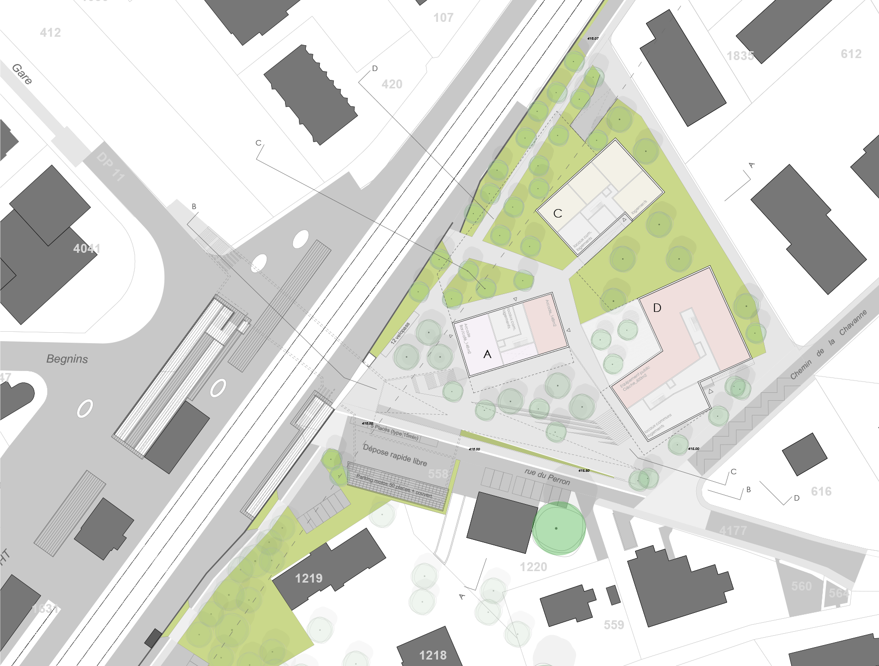 Ainsi, dès 2012, le bureau GEA a été mandaté pour organiser un concours d’architecture portant sur le projet » Gare – Sud « . Le projet du lauréat a ensuite servi de base à un plan d’affectation (PA) élaboré en 2014. Ce PA est accompagné d’une étude spécifique sur le stationnement dans le périmètre concerné.